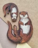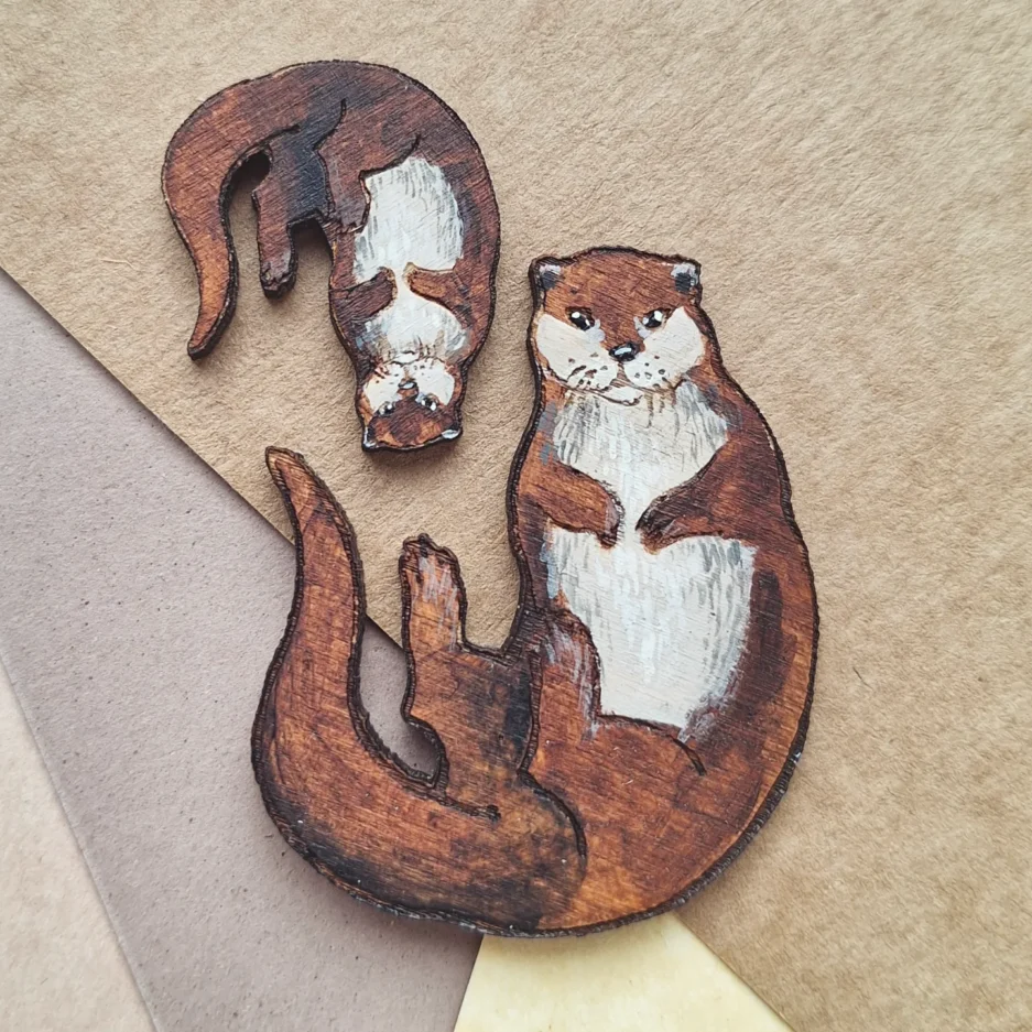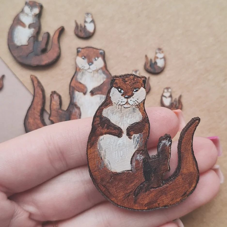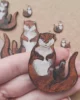 Broszka wykonana z drewna na podstawie autorskiego rysunku, ręcznie malowana, następnie zabezpieczona lakierem. Każda będzie niepowtarzalna. Wielkość ok 4,5cm.